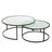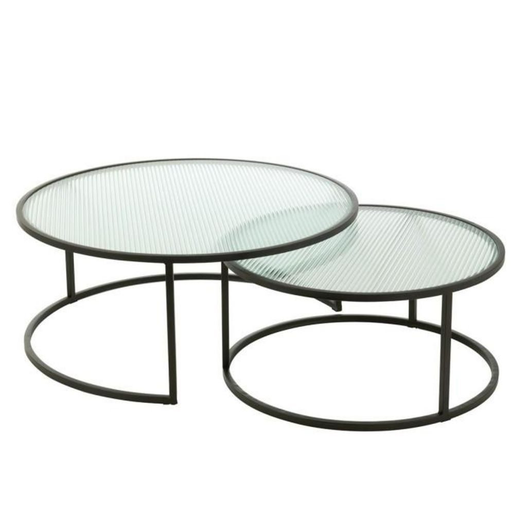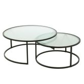 Informations Techniques : Dimensions : Taille 1 : D. 70 x H. 34 cm Taille 2 : D. 89 x H. 38 cm Matières : Verre & Métal Spécificités : Pratique & Tendance Lot de 2 Tables Basses Forme Ronde Capacité Portante : 15 kg Poids : 9,35 kg Couleur : Noir & Transparent