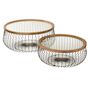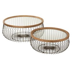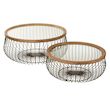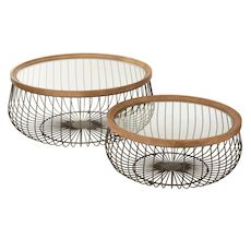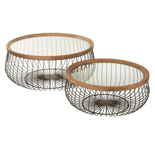 Informations Techniques : Dimensions : Taille 1 : D. 100 x H. 43 cm Taille 2 : D. 80 x H. 35 cm Matières : Verre & Métal Spécificités : Tendance & Moderne Lot de 2 Tables Basses Forme Ronde Plateau en Verre Structure en Métal Poids : 33,6 kg Couleur : Noir, Naturel & Transparent