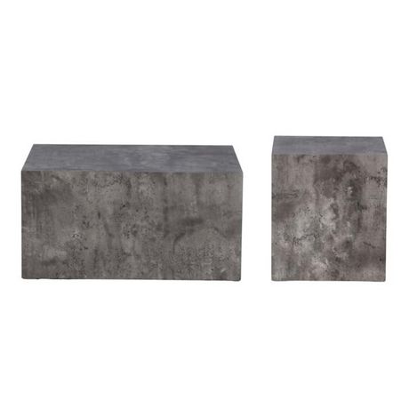 Informations Techniques : Dimensions : Petite : L. 40 x l. 40 x H. 45 cm Grande : L. 80 x l. 60 x H. 40 cm Matières : MDF & Papier laminé Spécificités : Pratique & Design Lot de 2 tables basses Imitation marbre Tailles différentes et complémentaires Poids max supporté : 100 kg (par table) Poids :
