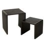 Informations Techniques : Dimensions : Taille 1 : L. 40 x l. 40 x H. 35 cm Taille 2 : L. 50 x l. 45 x H. 50 cm Matière : 100% Bois (Recyclé) Spécificités : Élégant & Naturel Lot de 2 tables basses Design cubique Poids max supporté : 30 kg Poids : 9,7 kg Couleur : Noir