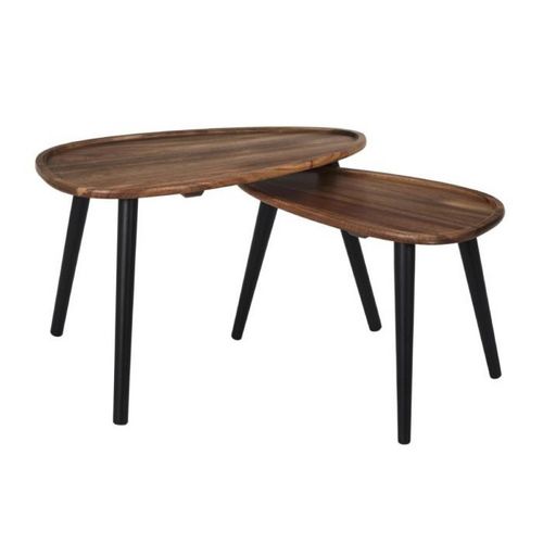 Lot de 2 Tables Basses Gigognes Galet 60cm Marron