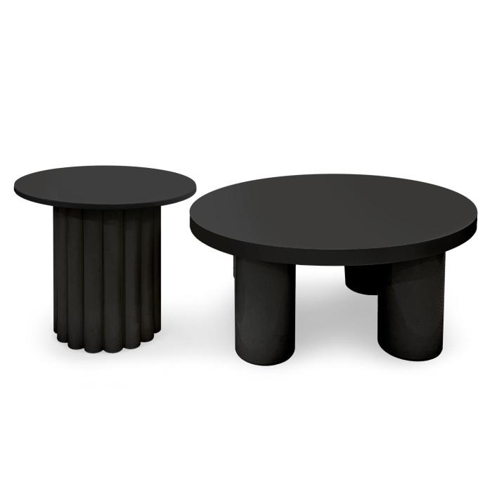 Lot de 2 Tables Basses Rondes Ericka 80cm Noir