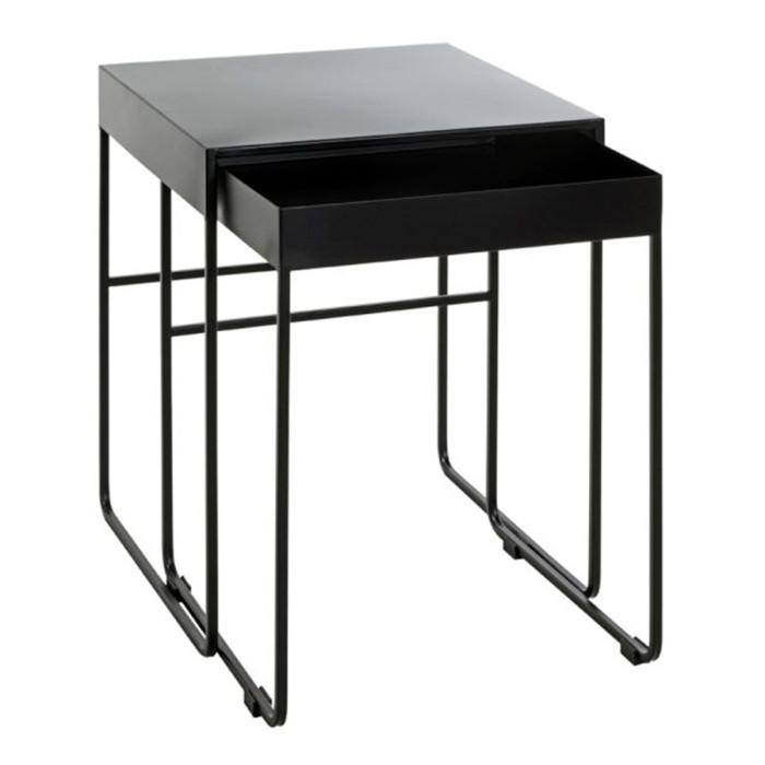 Informations Techniques : Dimensions : Taille 1 : L. 39 x l. 39 x H. 51 cm Taille 2 : L. 42 x l. 42 x H. 54 cm Matière : Métal Spécificités : Moderne & Tendance Lot de 2 Tables d'Appoint Design Forme Carrée Livré non monté Nombre de colis : 1 Poids : 4,86 kg Couleur : Noir
