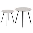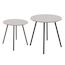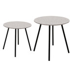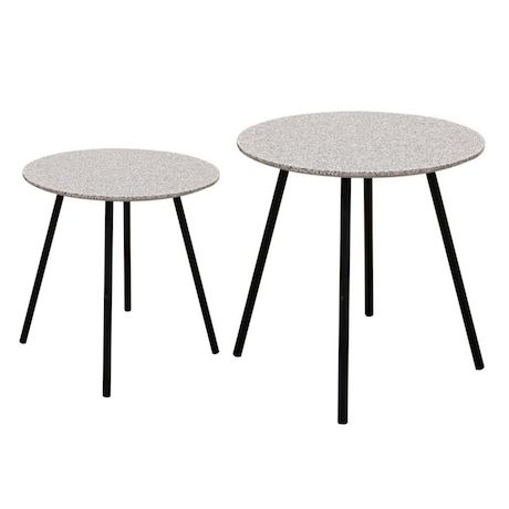 Informations Techniques : Dimensions : Taille 1 : D. 48 x H. 45 cm Taille 2 : D. 40 x H. 40,5 cm Matières : MDF, Métal & Fer Spécificités : Pratique & Utile Lot de 2 Tables d'Appoint design Forme Ronde Plateau avec effet Granit 4 Pieds en Fer Facile d'entretien & d'utilisation Couleur : Gris & No