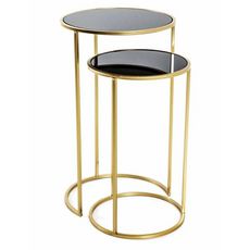 Informations Techniques : Dimensions : Table 1 : D. 30 x H. 50 cm Table 2 : D. 35 x H. 60 cm Matières : Acier & Verre Spécificités : Pratique & Tendance Lot de 2 Tables d'Appoint Design Forme Ronde Plateaux en Verre Trempé Laqué Noir Structure en Acier Produit Monté Poids : 3,87 kg Couleur : Or & N