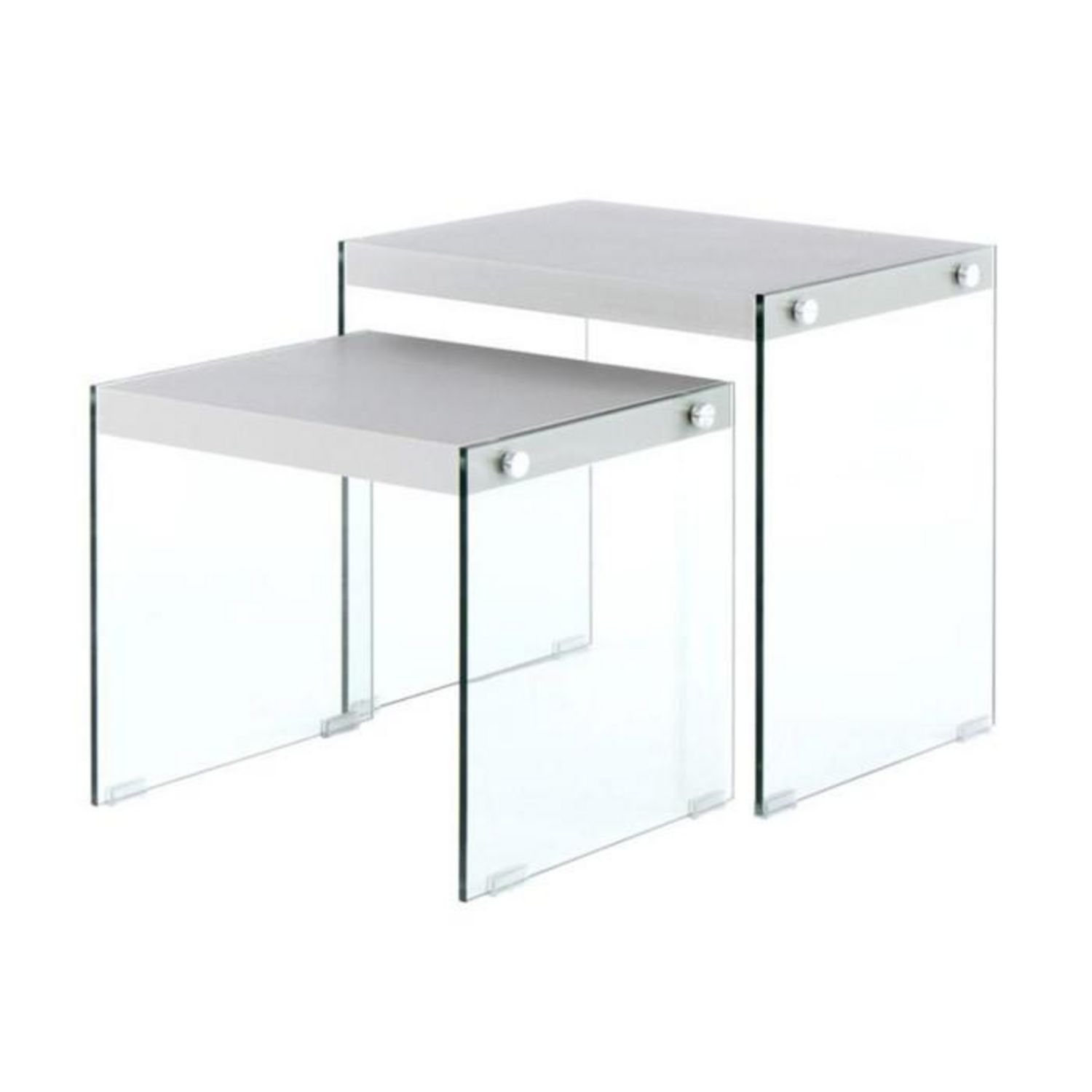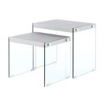 Informations Techniques : Dimensions : L. 46 x l. 40 x H. 43 cm Matières : MDF & Verre Spécificités : Pratique & Design Lot de 2 Tables d'Appoint Déco Grand Espace de Stockage Forme Rectangulaire Facile d'Entretien Design Uni 2 Tailles Différentes Assemblage à Prévoir Poids : 12,3 kg Couleur : Arge