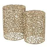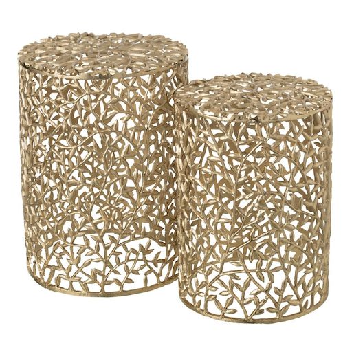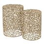 Informations Techniques : Dimensions : Taille 1 : D. 33 x H. 44,5 cm Taille 2 : D. 37 x H. 50,5 cm Matière : 100% Aluminium Spécificités : Élégant & Robuste Lot de 2 tables d'appoint Design ajouré Forme cylindrique Poids : 7,2 kg Couleur : Doré
