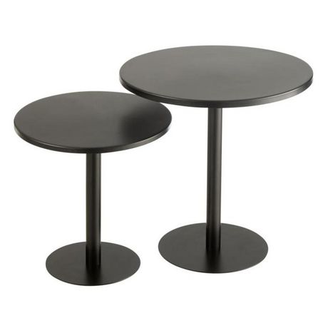 Informations Techniques : Dimensions : Taille 1 : D. 40 x H. 50 cm Taille 2 : D. 50 x H. 40 cm Matière : 100% Métal Spécificités : Pratique & Utile Lot de 2 tables d'appoint Forme ronde À monter soi-même Poids : 7,9 kg Couleur : Noir
