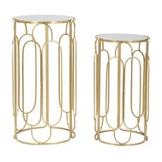 Lot de 2 Tables d'Appoint Gigogne Ronde Arty 70cm Or