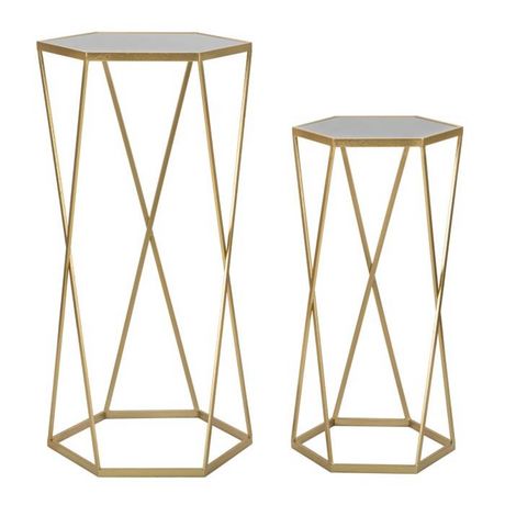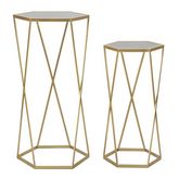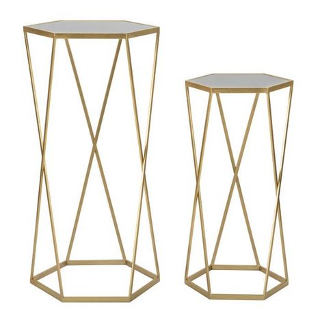 Lot de 2 Tables d'Appoint Hexagone 65cm Or