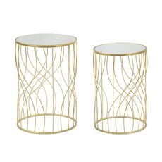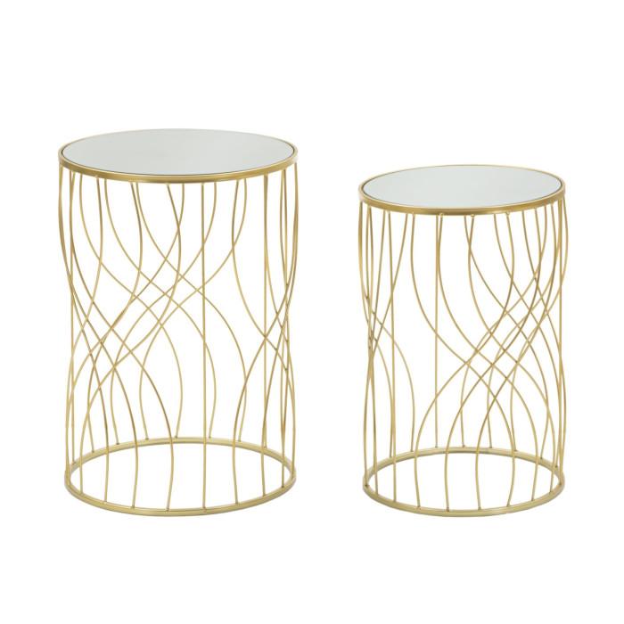 Lot de 2 Tables d'Appoint Lignes 55cm Or
