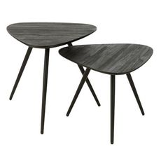 Lot de 2 Tables d'Appoint Triangles Teck 50cm Noir