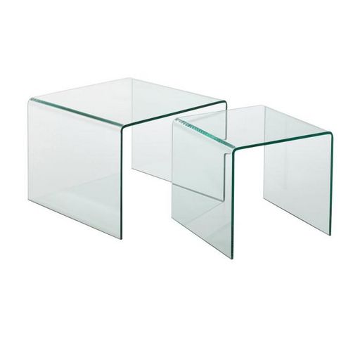 Informations Techniques : Dimensions : Taille 1 : L. 65 x l. 65 x H. 48 cm Taille 2 : L. 50 x l. 50 x H. 45 cm Matière : Verre Spécificités : Pratique & Tendance Lot de 2 Tables Gigognes Forme Rectangulaire Capacité Portante : 50 kg Poids : 57 kg Couleur : Transparent