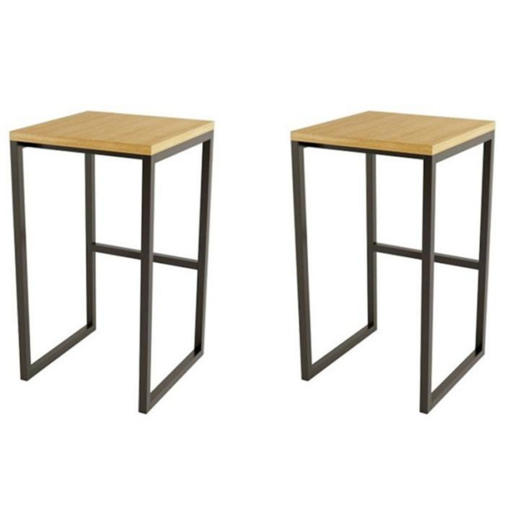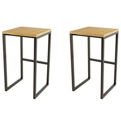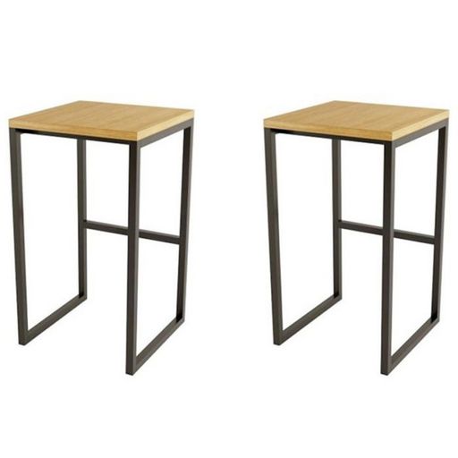 Lot de 2 Tabourets Design Frame 65cm Chêne & Noir
