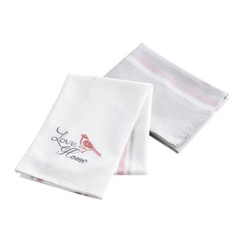 Lot de 2 Torchons de Cuisine Love Home 50x70cm Blanc