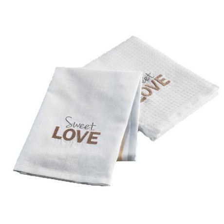 Lot de 2 Torchons Nid d'Abeille Brodé Hearty 50x70cm Blanc