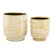 Informations Techniques : Dimensions : Taille 1 : D. 18 x H. 19 cm Taille 2 : D. 22,5 x H. 24 cm Ouverture trou taille 1 : D. 16 cm Ouverture trou taille 2 : D. 21 cm Matière : Céramique Spécificités : Chic & Intemporel Lot de 2 vases ronds Motifs en relief Poids : 3,61 kg Couleur : Or & Blanc
