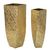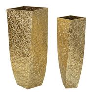Informations Techniques : Dimensions : Taille 1 : L. 25 x l. 25 x H. 78 cm Taille 2 : L. 34 x l. 34 x H. 90 cm Matière : Métal Spécificités : Élégant & Intemporel Lot de 2 vases design Motifs linéaires en relief Poids : 6,92 kg Couleur : Or