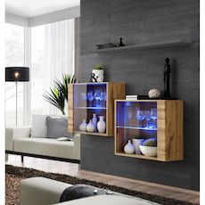 Lot de 2 Vitrines Murales & Étagère Switch SBIII 130cm Naturel & Gris