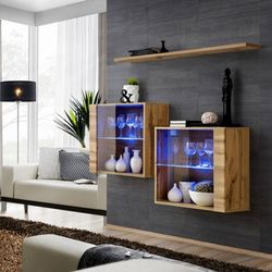 Lot de 2 Vitrines Murales & Étagère Switch SBIII 130cm Naturel