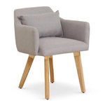 Informations Techniques : Dimensions : L. 58 x l. 58 x H. 70 cm Matières : Structure & Pieds : Bois & Métal Revêtement : Tissu Spécificités : Design & Moderne Vendu par lot de 20 Assise confortable À monter soi-même Coussin inclus Hauteur d'assise : 43 cm Hauteur d'accoudoirs : 58 cm Nombre de coli