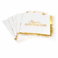 Lot de 20 Serviettes en Papier Anniversaire Gold 33x33cm Blanc