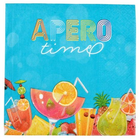 Lot de 20 Serviettes en Papier Apéro 33x33cm Bleu