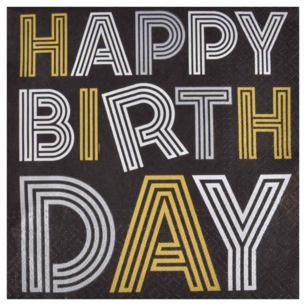 Lot de 20 Serviettes en Papier Birthday 33x33cm Noir