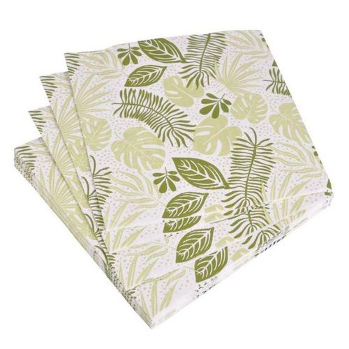 Informations Techniques : Dimensions : L. 33 x l. 33 cm Matière : Papier Spécificités : Pratique & Utile 20 Serviettes en Papier 3 Plis Jetables A Motifs Couleur : Vert