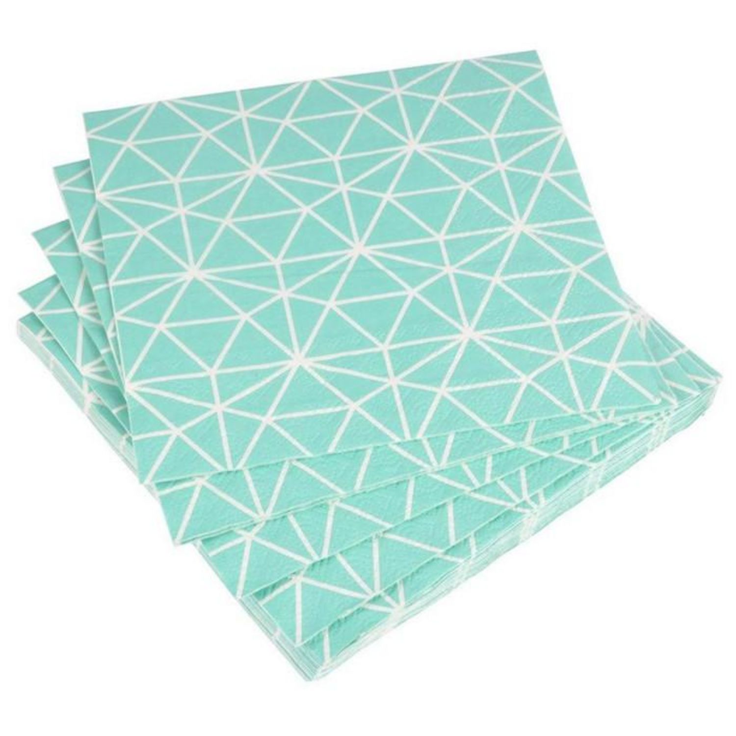 Lot de 20 Serviettes en Papier Géométrie 33x33cm Menthe