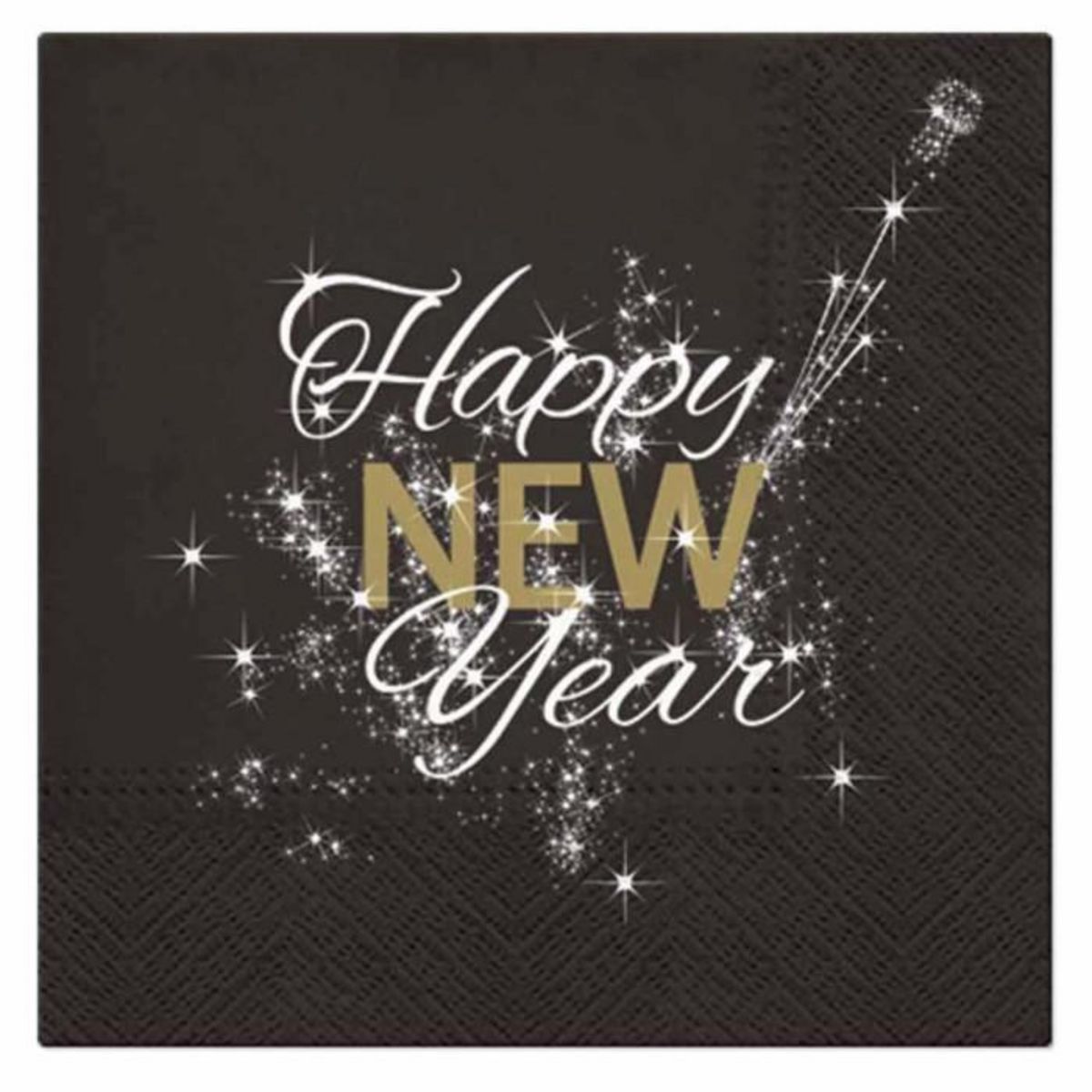 Lot de 20 Serviettes en Papier Happy New Year 33x33cm Noir