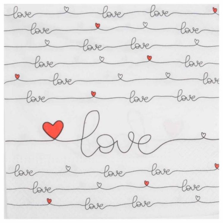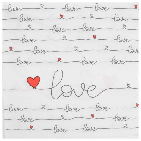 Lot de 20 Serviettes en Papier New Love 33x33cm Blanc