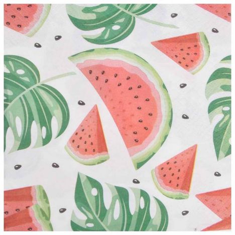 Lot de 20 Serviettes en Papier Pastèques 33x33cm Rouge