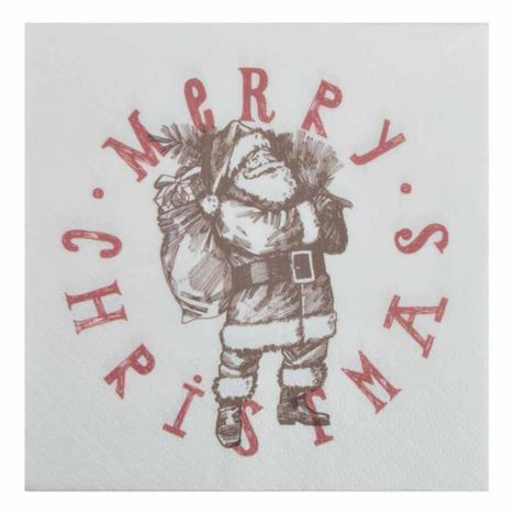 Lot de 20 Serviettes en Papier Père Noël 33x33cm Blanc