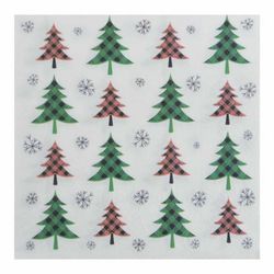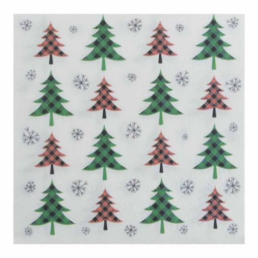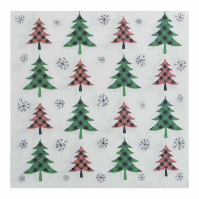 Lot de 20 Serviettes en Papier Sapins 33x33cm Vert & Rouge