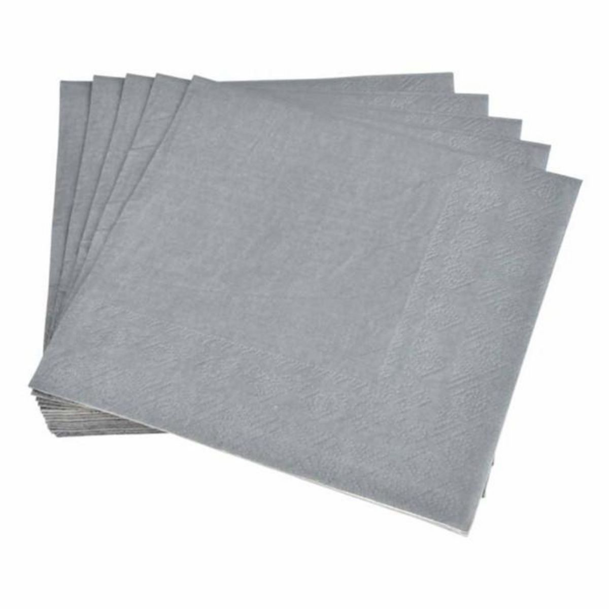 Informations Techniques : Dimensions : L. 33 x l. 33 cm Matière : Papier Spécificités : Pratique & Utile Lot de 3 Serviettes en Papier Forme Carrée 3 Plis Couleur : Gris