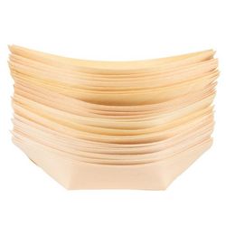Informations Techniques : Dimensions : L. 13 x l. 8,5 x H. 4 cm Matière : Bois (Pin) Spécificités : Pratique & Utile Lot de 24 Barquettes de Présentation Design Bateau Spécial Snacking Lavables & Réutilisables Poids : 0,003 kg Couleur : Naturel