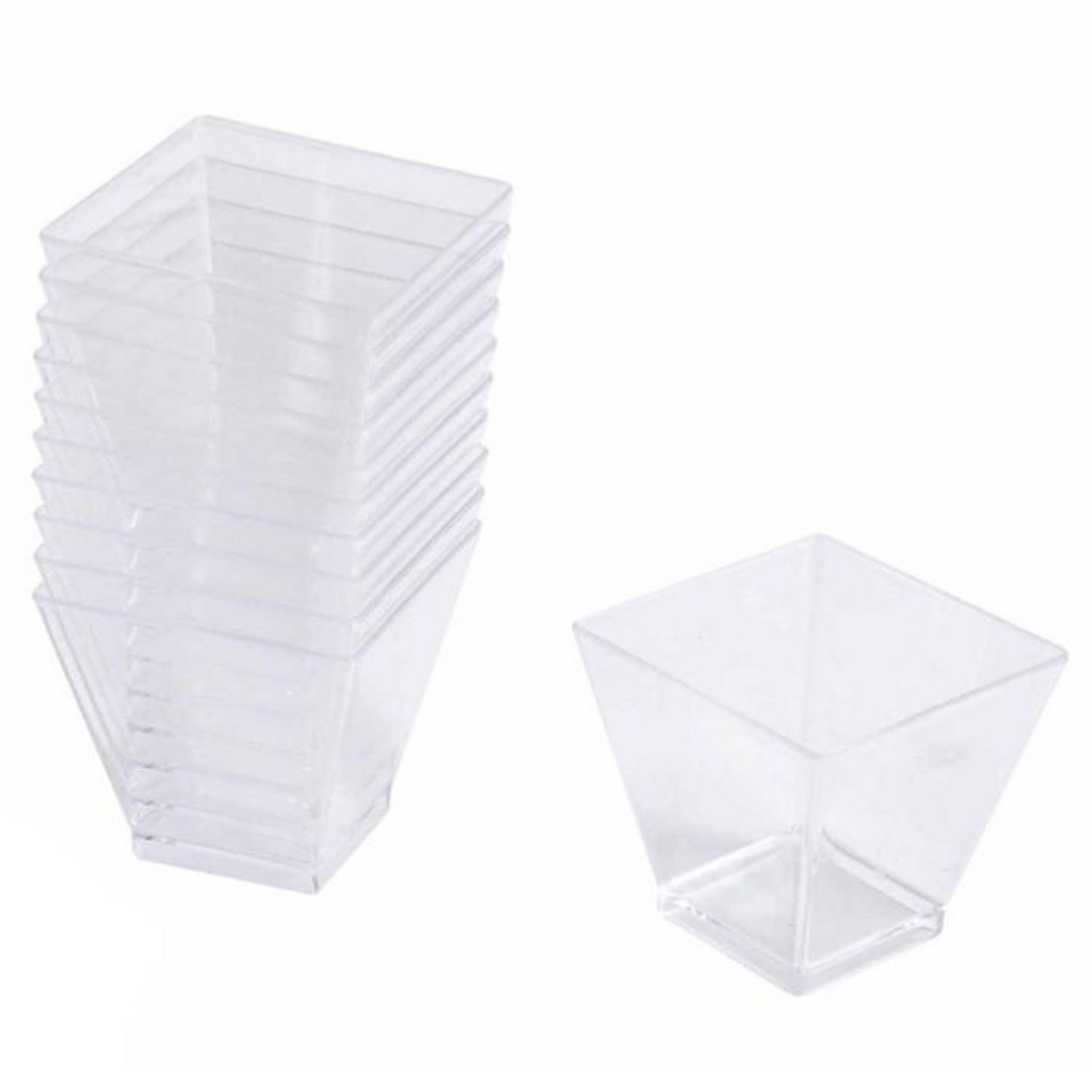 Lot de 25 Verrines Carrées en Plastique Réutilisable Mini Apéritif 6cl Argent