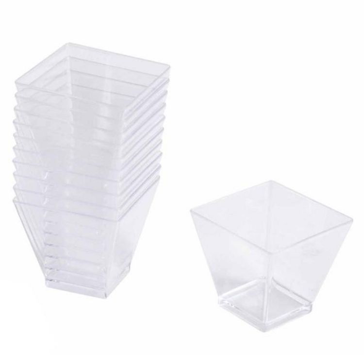 Lot de 25 Verrines Carrées en Plastique Réutilisable Mini Apéritif 6cl Or