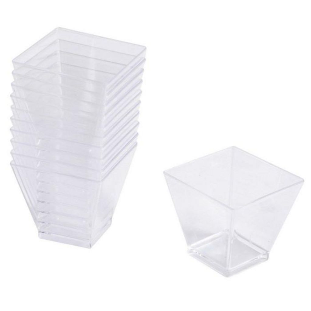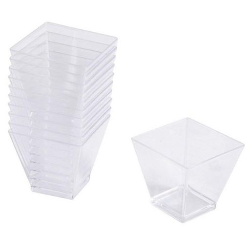Lot de 25 Verrines Carrées en Plastique Réutilisable Mini Apéritif 6cl Transparent