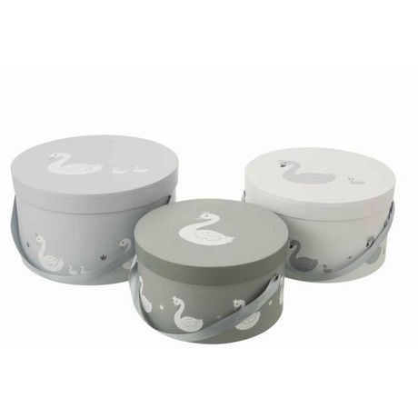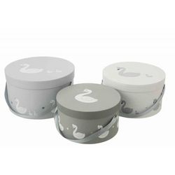 Lot de 3 Boîtes Déco Cygne 32cm Blanc & Gris