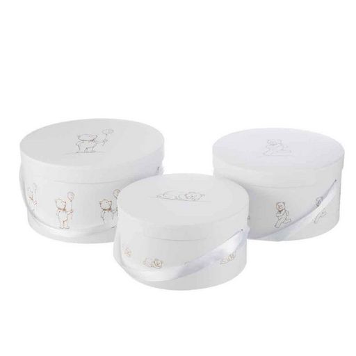 Lot de 3 Boîtes Déco Enfant Ourson 32cm Blanc