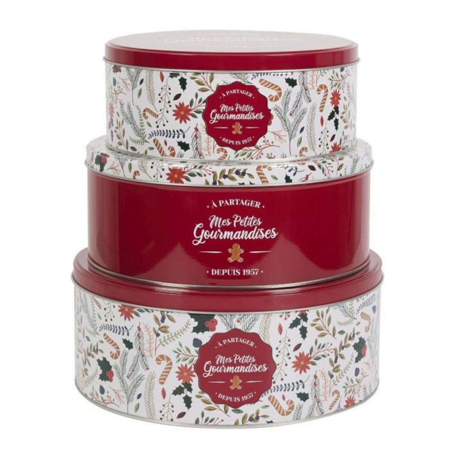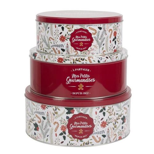 Lot de 3 Boîtes en Métal Mes Petites Gourmandises 25cm Rouge