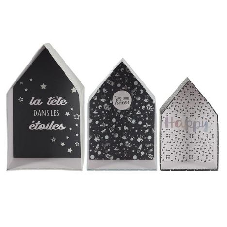 Lot de 3 Boîtes Gigognes Maison Garçon 32cm Gris