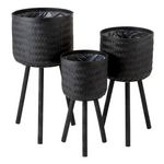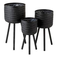Informations Techniques : Dimensions : D. 37 x H. 76 cm Matières : Bambou, Roseau, Rotin & Plastique Spécificités : Tendance & Moderne Lot de 3 Cache-Pots design Sur Pied Forme Ronde Facile d'entretien & d'utilisation Poids : 4,32 kg Couleur : Noir