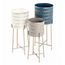 Informations Techniques : Dimensions : Grand : D. 29 x H. 70 cm Moyen : D. 26 x H. 64 cm Petit : D. 22 x H. 59 cm Matières : Acier & Métal Spécificités : Design & Moderne Vendu par lot de 3 Usage Intérieur ou Extérieur Poids : 4,68 kg Couleur : Or, Turquoise, Crème & Taupe