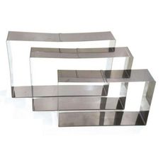 Informations Techniques : Dimensions : Taille 1 : L. 5 x l. 16 x H. 25 cm Taille 2 : L. 5 x l. 14,5 x H. 22,5 cm Taille 3 : L. 5 x l. 12 x H. 20 cm Matières : Métal & Acier inoxydable Spécificités : Pratique & Utile Lot de 3 Cadres à Pâtisserie Forme Rectangulaire Facile d'entretien & d'utilisation