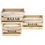 Informations Techniques : Dimensions : Taille 1 : L. 40 x l. 30 x H. 22 cm Taille 2 : L. 34 x l. 25 x H. 18 cm Taille 3 : L. 28 x l. 19 x H. 14 cm Matière : Bois Spécificités : Pratique & Utile Lot de 3 Cagettes de Rangement Forme Rectangulaire Avec inscription Couleur : Naturel