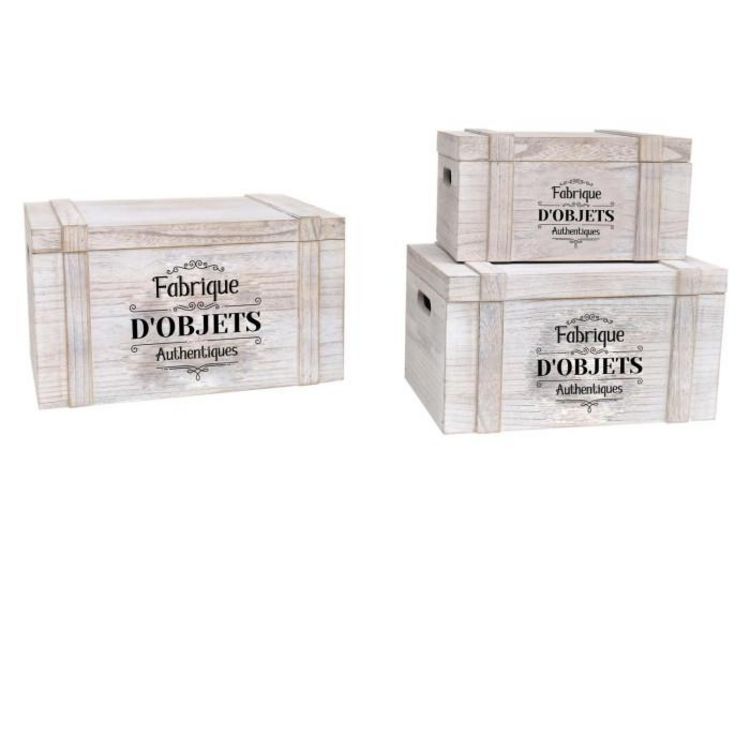 Lot de 3 Cagettes en Bois Malle Creuse 42cm Blanc