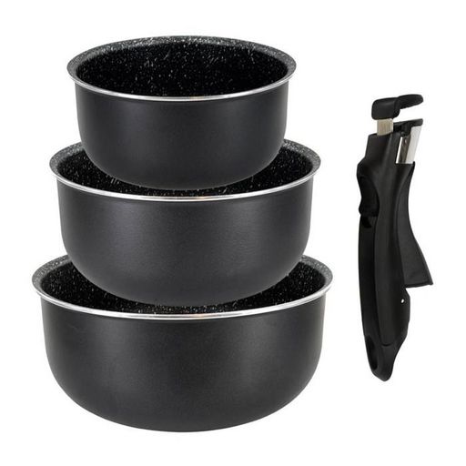Lot de 3 Casseroles Poignée Amovible 20cm Noir